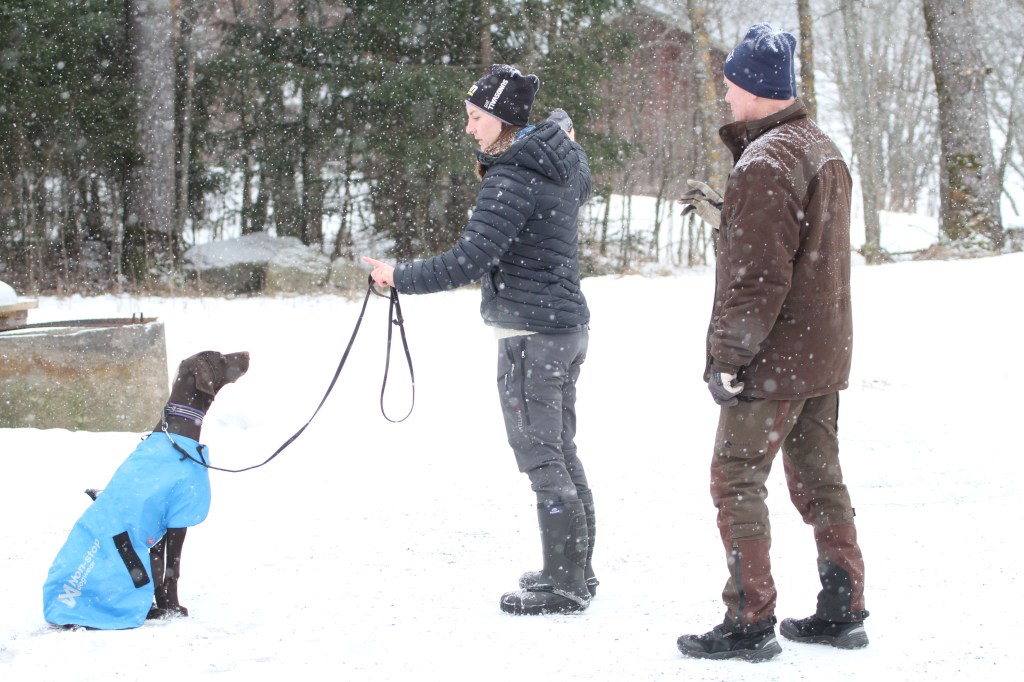Tyvärr gjorde ”skitvintern” sig påmind med att dressyrplanen var rejält hal trots att vi försökt sanda så mycket det bara var möjligt. Värst var det nog ändå för hundarna då de saknade broddar eller icebugs.