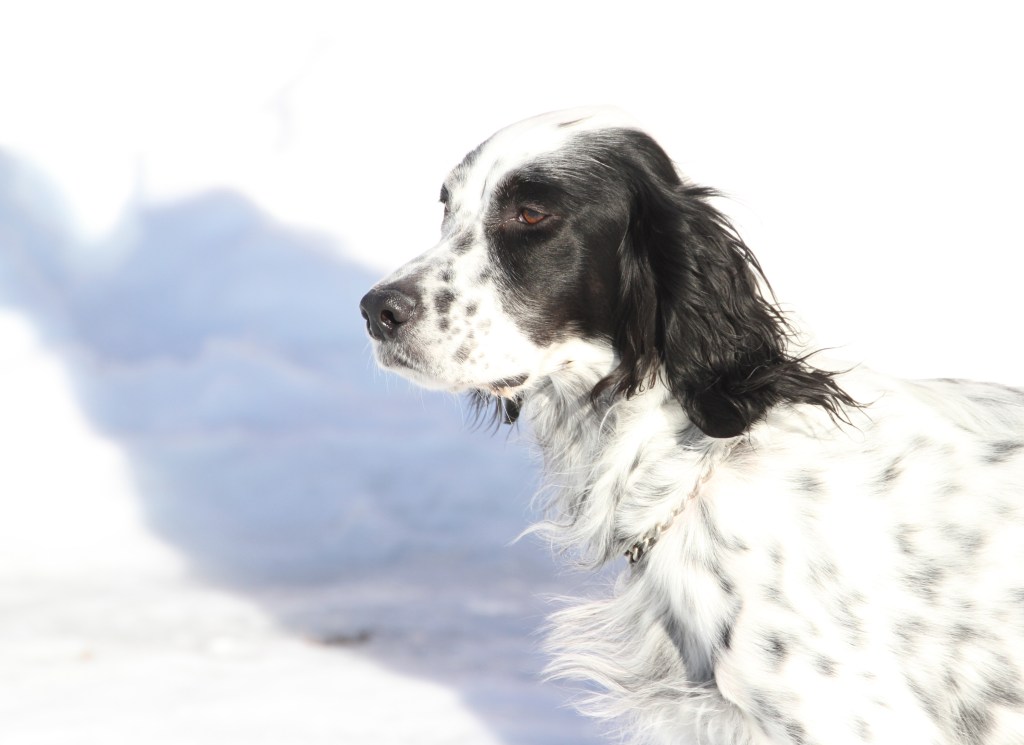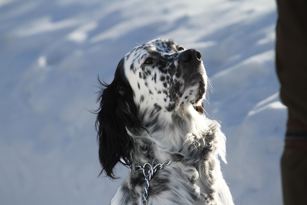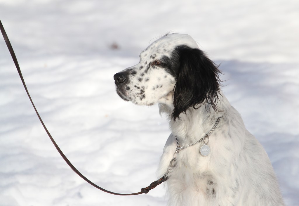 Den unga engelska settern ville inte fotograferas, så på alla bilder blundade den.
