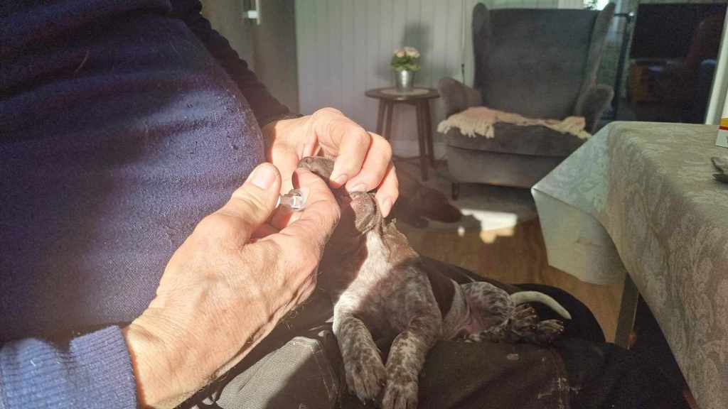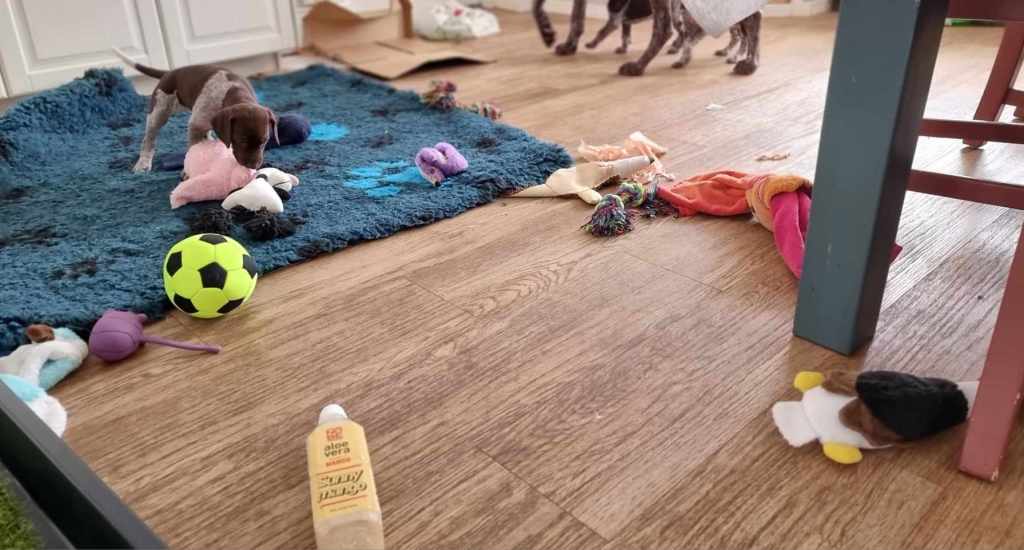 Och sedan, hur mycket möbler behöver man egentligen i ett kök – inser att det tillslut bara kommer att återstå det stabila köksbordet och den väggfasta sittbänken. För i sinom tid kommer stolarna hamna i salen eller i hallen, precis som med allt annat. Varför, jo nio glada vorstehvalpar kan verkligen konsten att riva ett hushåll, har trots det ”rosa skimret” sett det förut! Fast det är lika bra att stolarna åker ut och man själv sitter på bordet när man ska fika eller äta, om man nu känner att man vill ha sina hälsenor oskadda.
