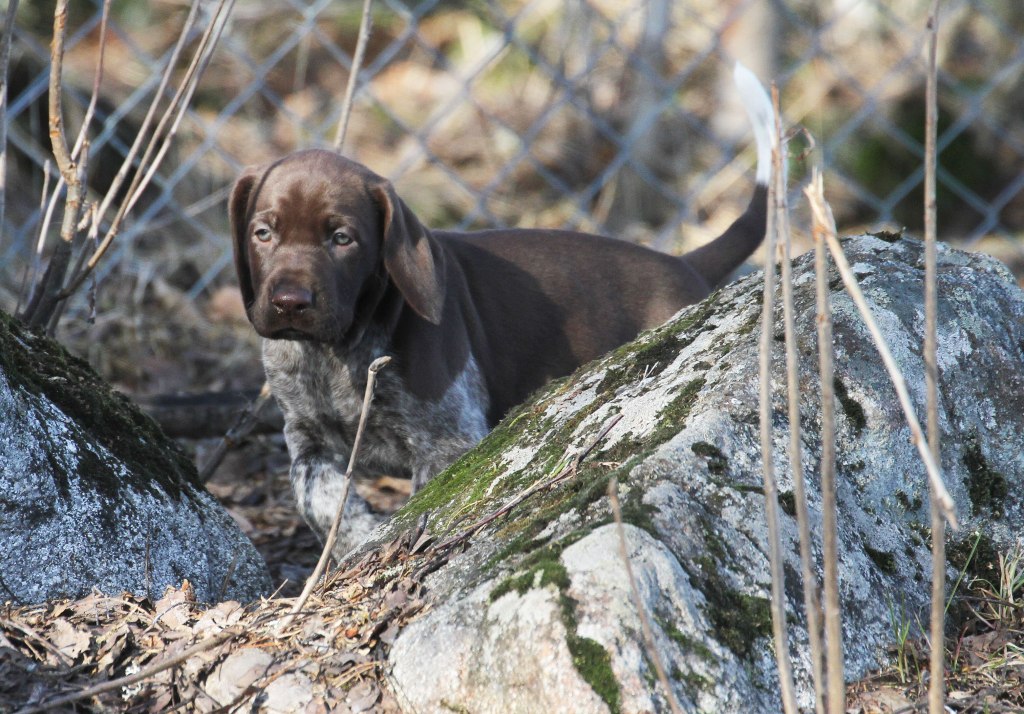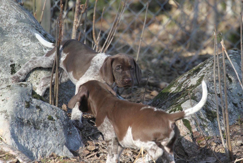 Äntligen var det tillräckligt varmt och torrt ute så att vi kunde låta valparna komma ut en stund i hundgården för att kunna få springa lite friare. Självklart var vi med dem hela tiden då vi under vår och höst har en hel del av både havs- och kungsörn cirkulerande i luften eftersom de ofta följer kusten i samband med sina flyttningar norrut eller på hösten söderut.