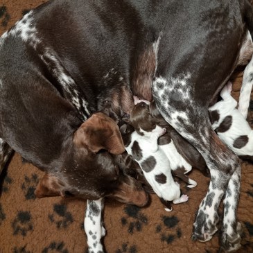 Nu är valparna 17 dagar och en viss ökad aktivitet kan man se på de små, även om de för det mesta fortfarande sover en stor del av dygnet. Ögonen är öppna, de har rest sig på sina fyra och går hyffsat omkring i valplådan. Dessutom kan man se både ett ökat intresse för sina … Mer Nu är vi mer vakna …. ja nästan i alla fall